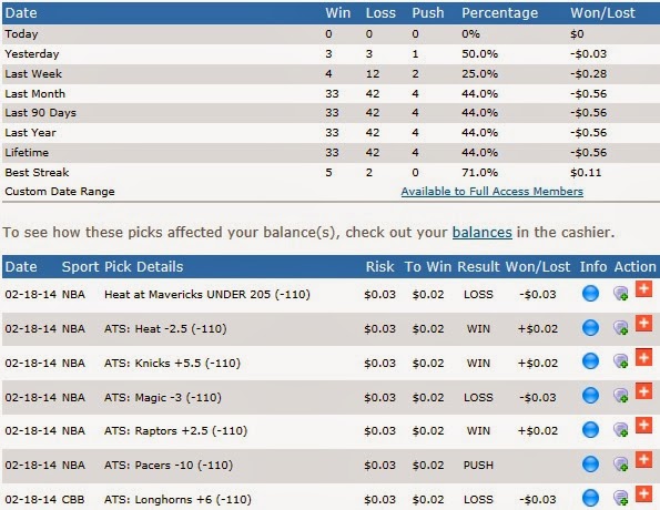 This section is devoted to all the free picks I receive on a daily basis. As some of you might suspect free picks are usually garbage. Why? Cause they are free! So I'm going against every single one and tracking it here.